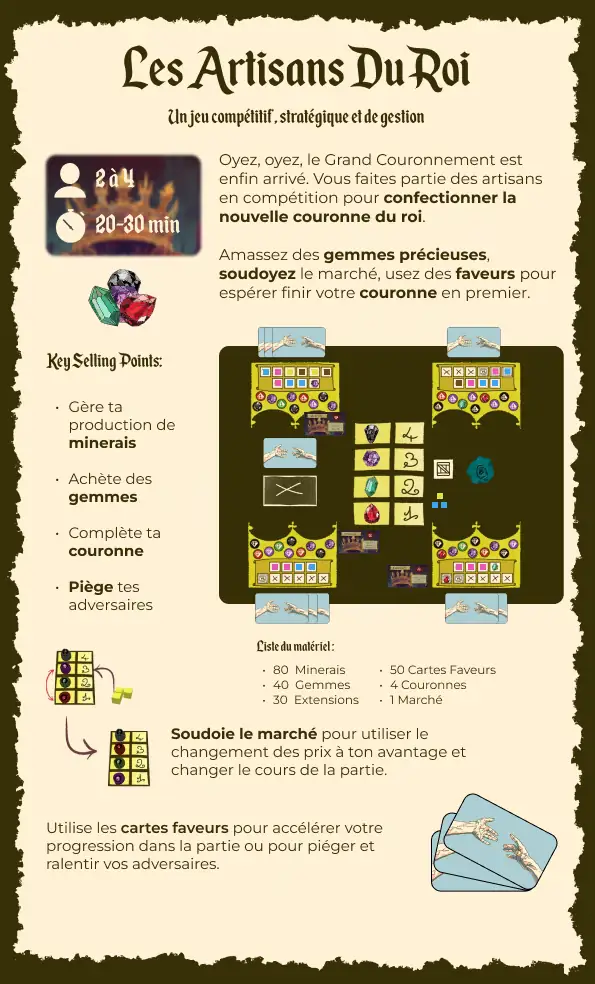 Les Artisans du Roi is a board game made during a Game Design Course.